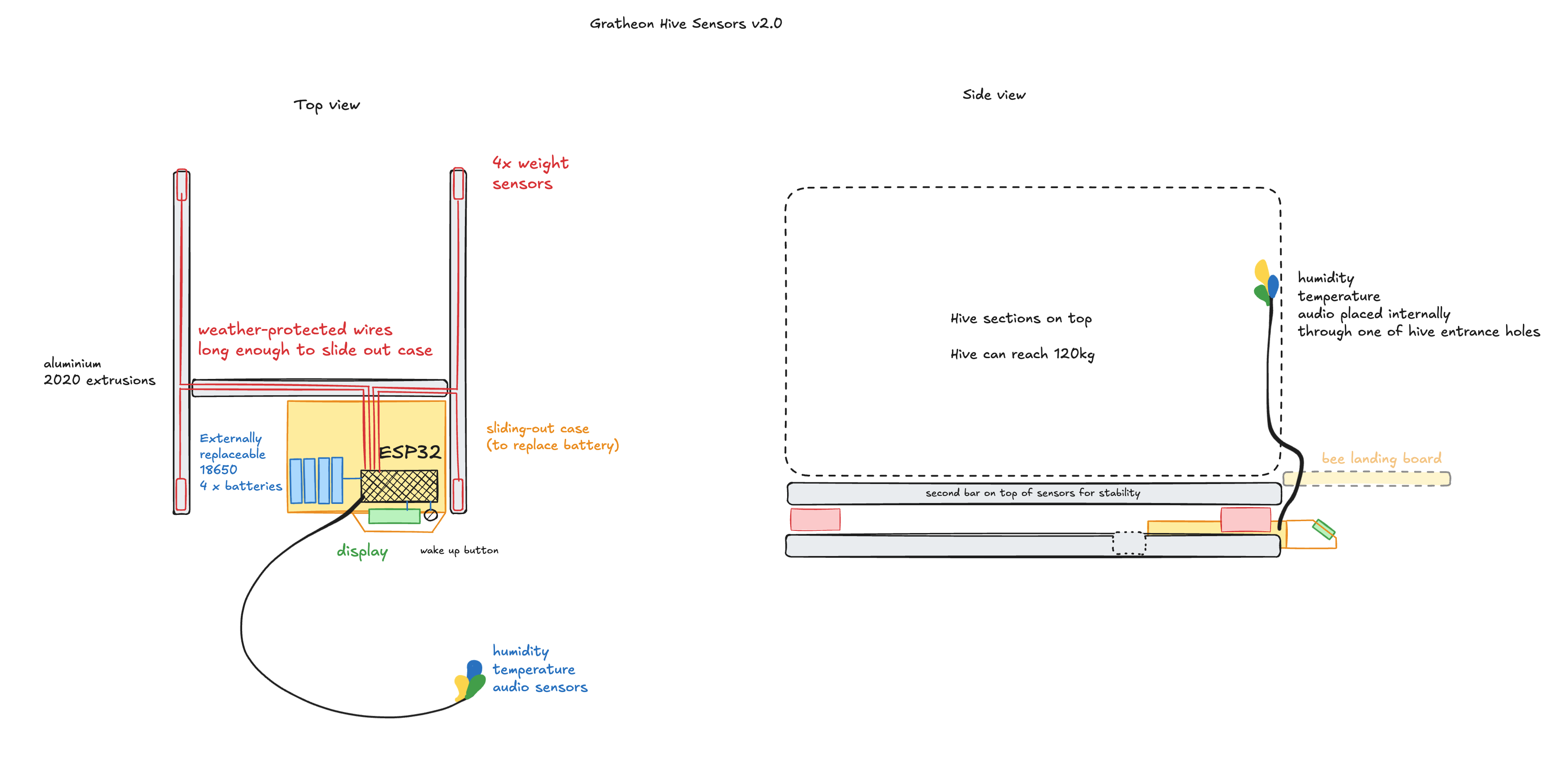 ๐ก๏ธ Beehive IoT sensors are essentially smart scales equipped with additional sensors and communication chips. They periodically measure the hive's state and send data to a web app. This aggregated data helps beekeepers monitor their colonies in the field with minimal costs.